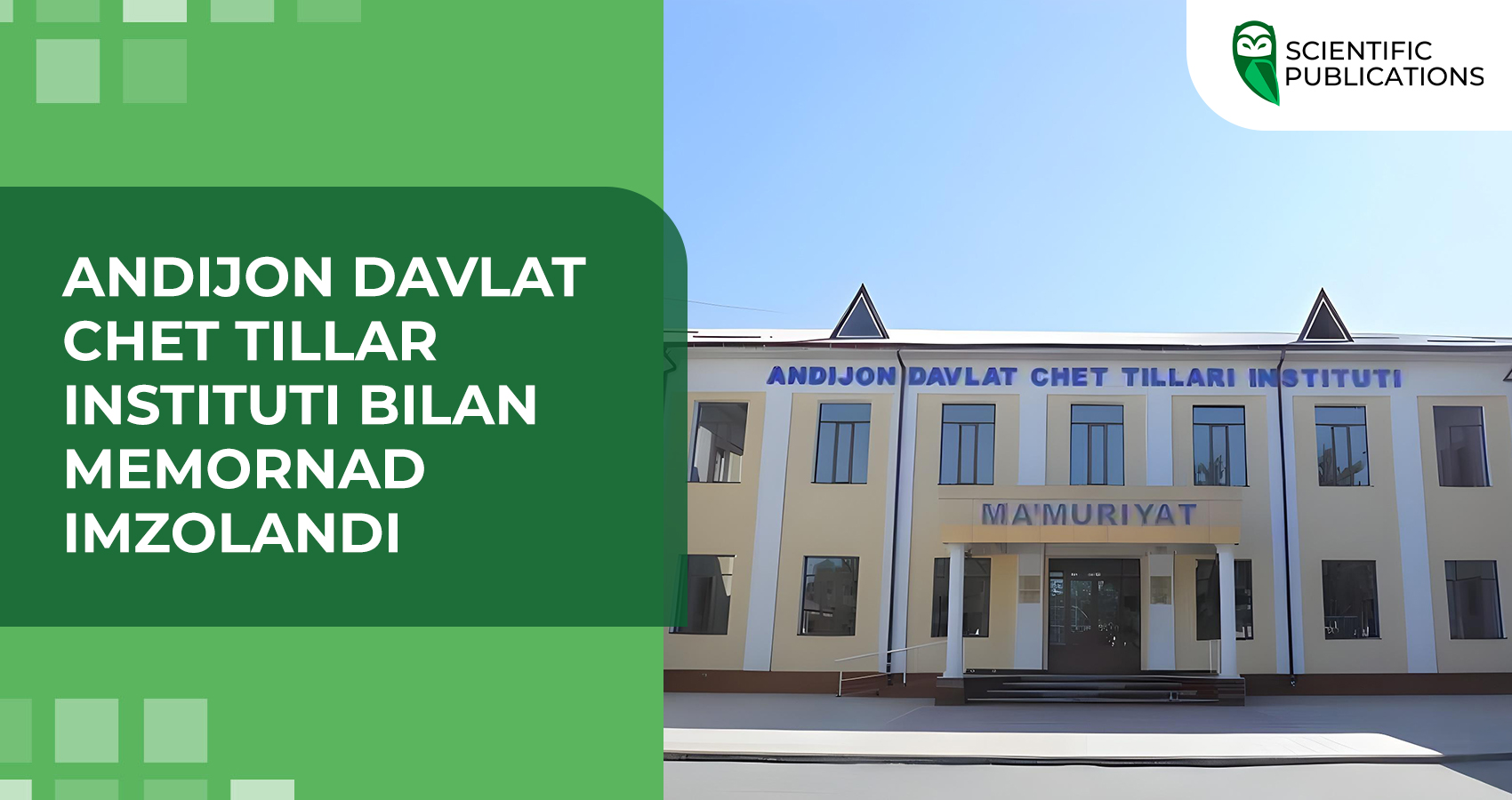 Kompaniya ànín Publications Andijon davlat chet tillar instituti bilan hamkorlik memorandumini imzoladi (g. Andijon, Oʻzbekiston).